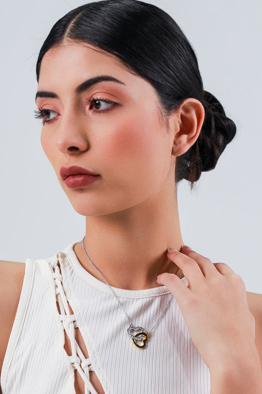 Collar Doble Corazón | Baño de Oro/Rodio | Zirconia