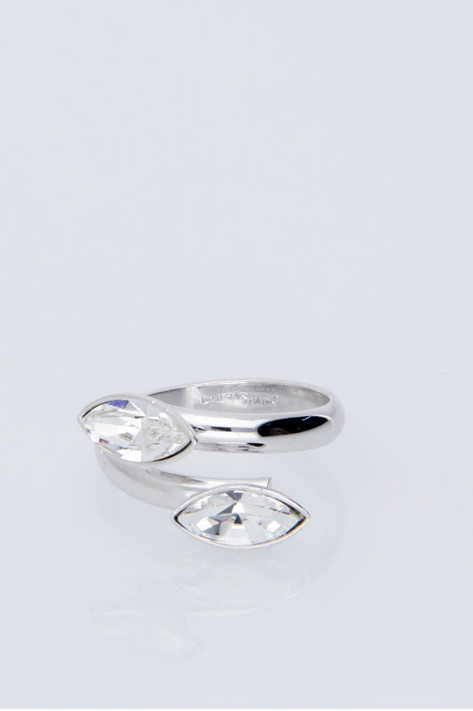 Anillo Navette | Baño de Rodio | Cristal