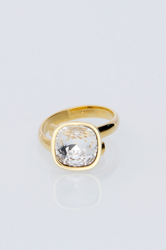 Anillo Cuadrado | Baño de Oro | Cristal