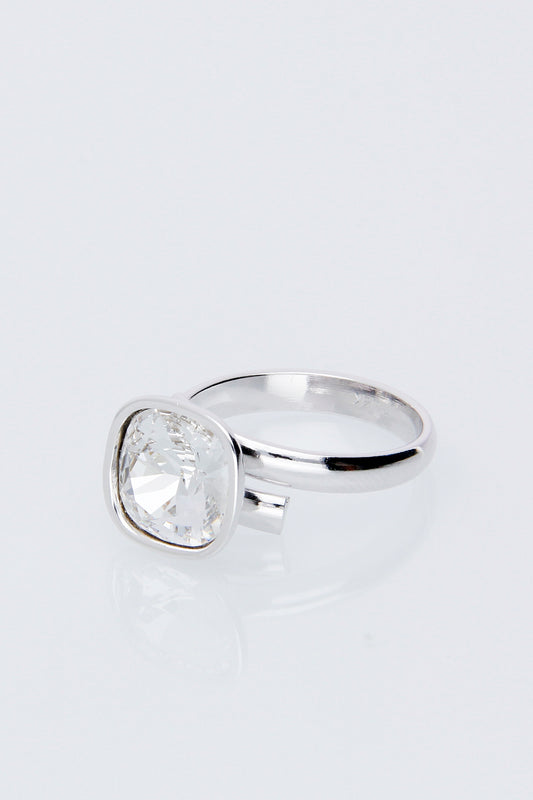 Anillo Cuadrado | Baño de Rodio | Cristal