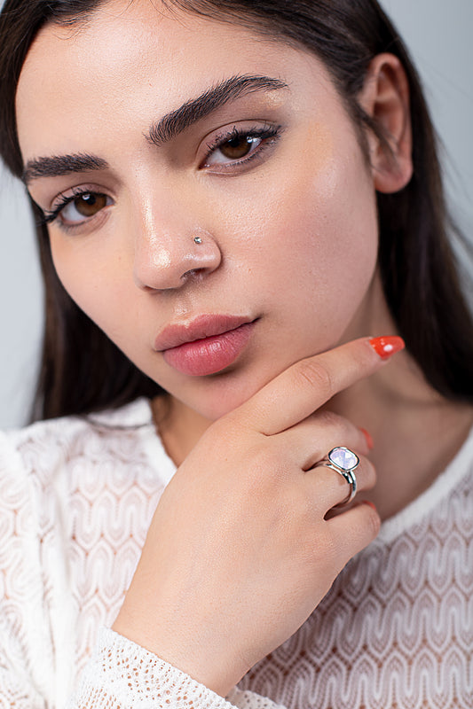 Anillo Cuadro | Baño de Rodio | Rose Opal