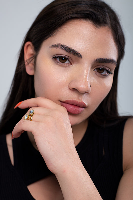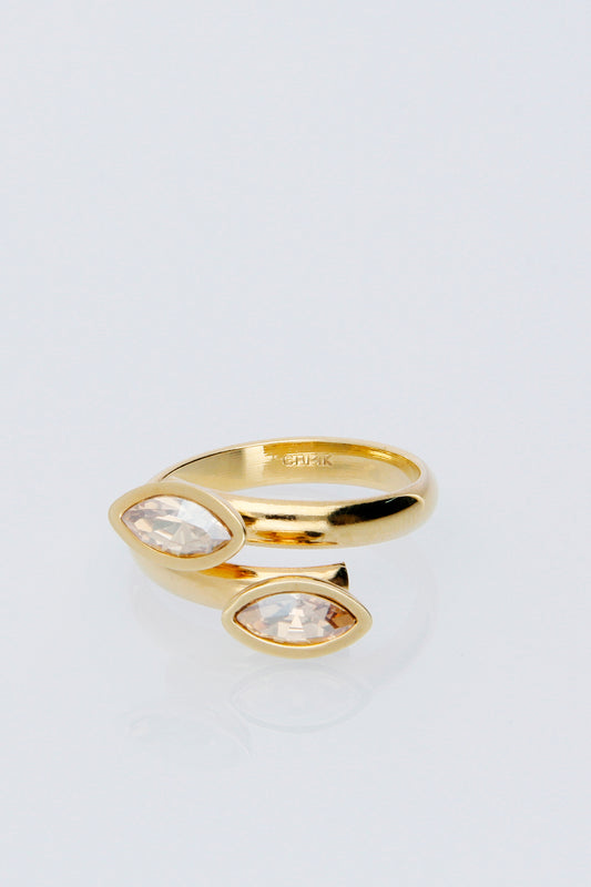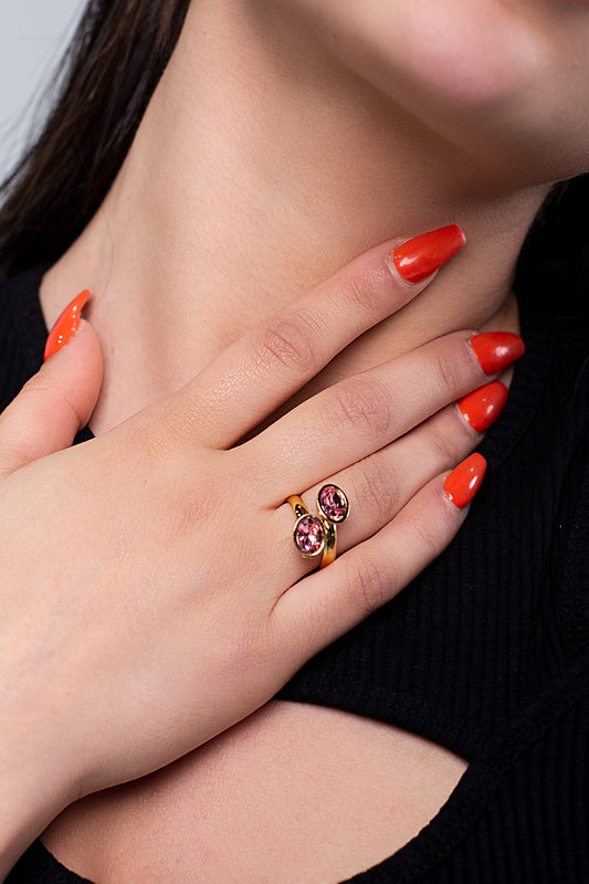 Anillo Doble Oval | Baño de Oro | Cristal