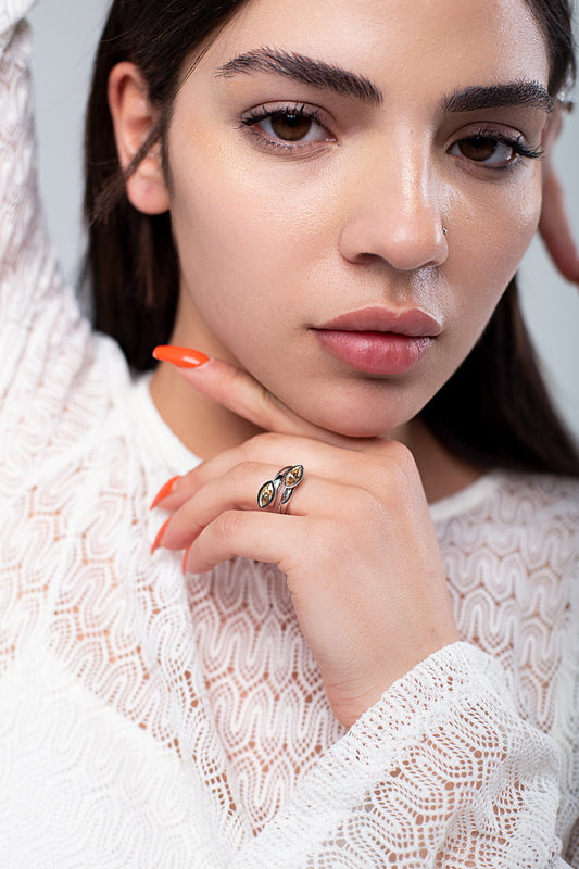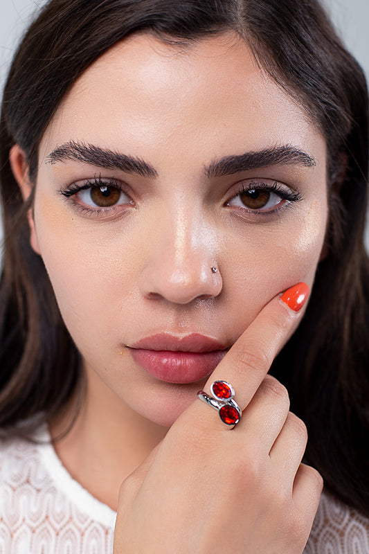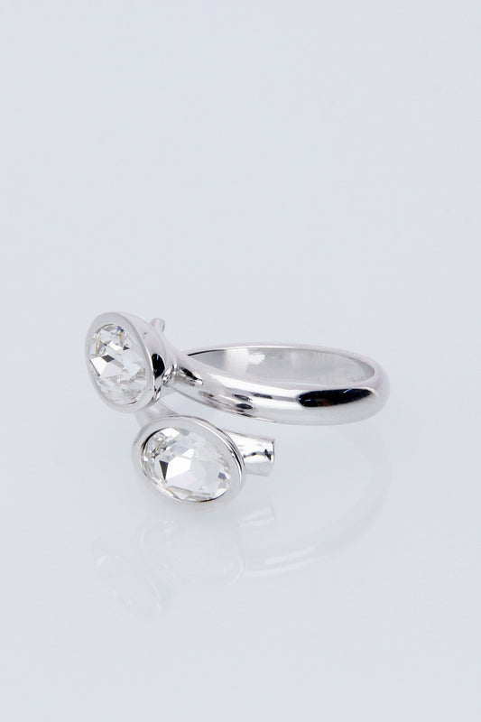 Anillo Doble Oval | Baño de Rodio | Cristal