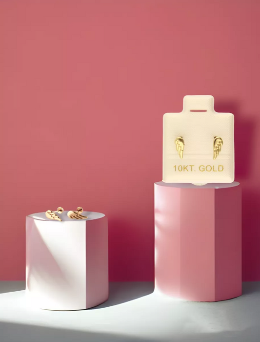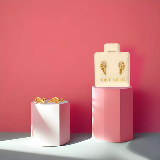 Aretes / Broquel Alas Oro 10k Con Cristal Ortiz Espinosa